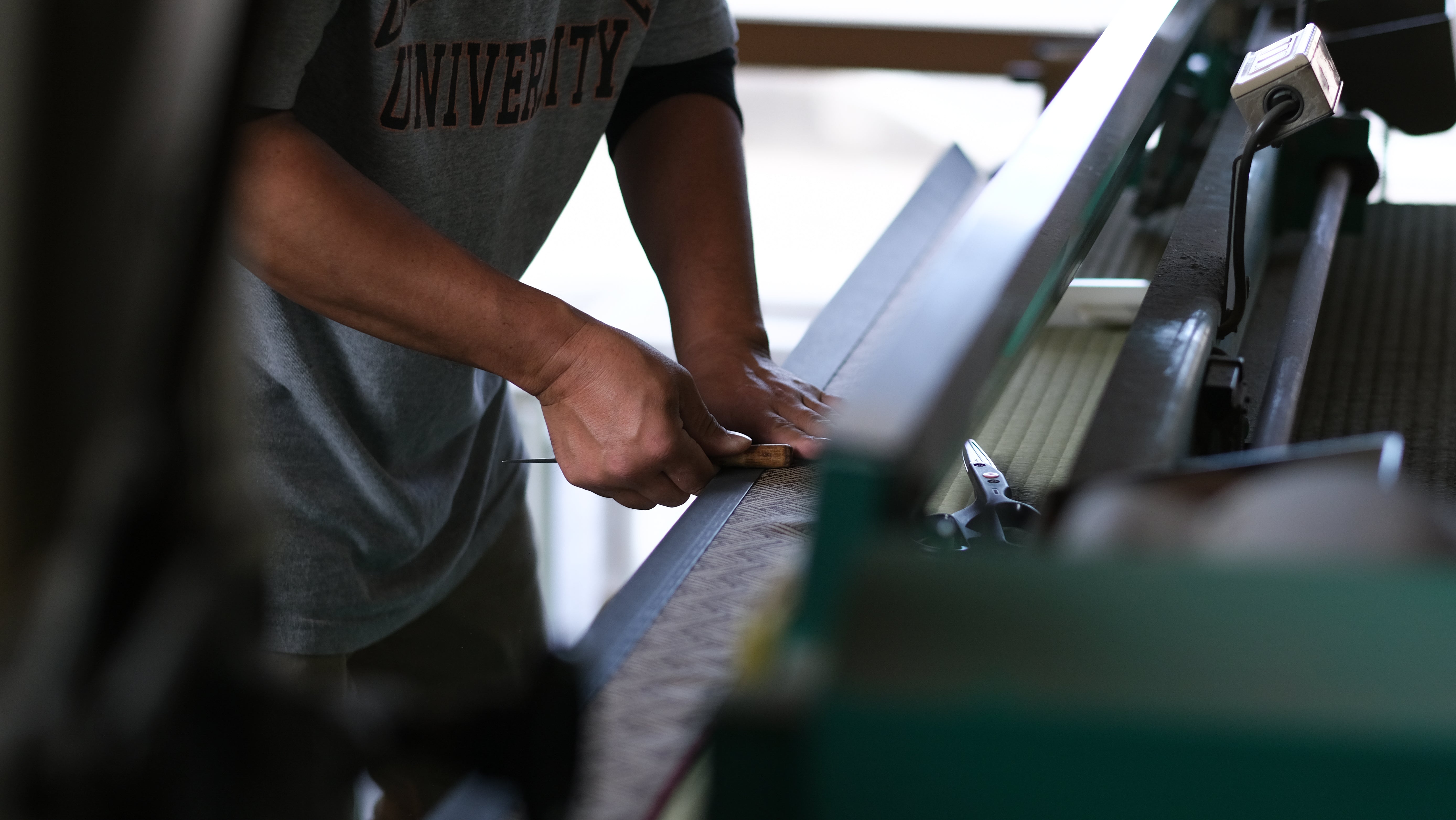 With over 50 years of craftsmanship, Matsuba Tatami Shop is a long-established maker specializing in high-quality tatami and igusa products.